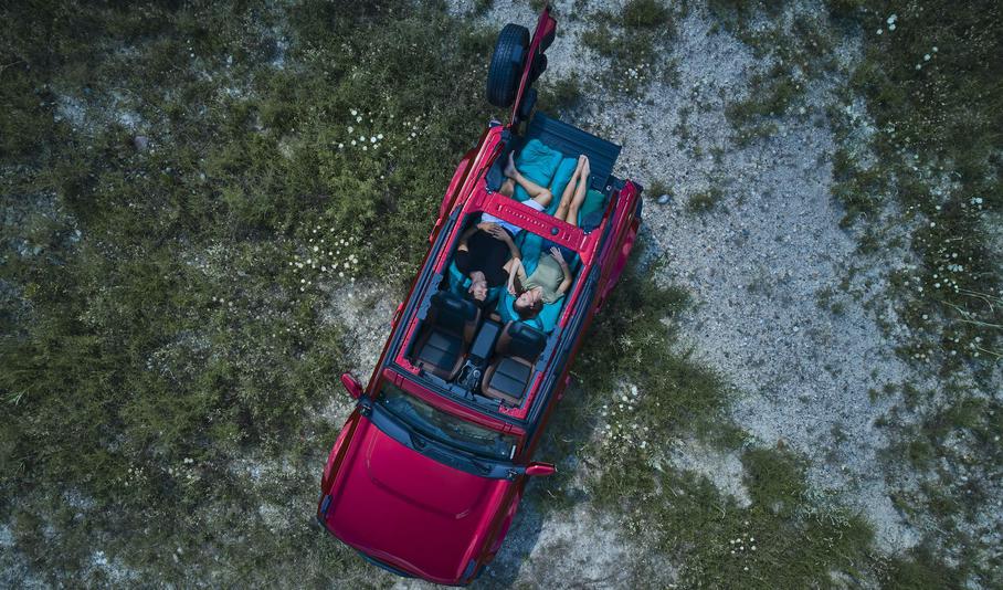 Для відродженого Bronco пропонується безліч різноманітних аксесуарів, проте Ford показав, як спати удвох в новому Bronco і без них. У п’ятидверної версії позашляховика в салоні більше місця, ніж в аналогічному Jeep Wrangler, відзначає виробник. Наприклад, при складеному задньому дивані і зсунутих вперед до упору передніх кріслах до дверей багажника залишається 229 сантиметрів. Правда, по діагоналі. А якщо вимірювати відстань уздовж бортів кузова, то від спинок передніх сидінь до багажних дверей залишиться 201 сантиметр, що теж цілком непогано.