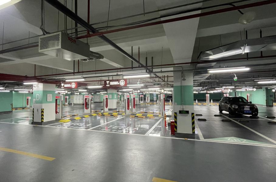 На підземній парковці торгового комплексу Jing’an International Center в Шанхаї відкрилася найбільша зарядна станція Tesla. Одночасно на ній можуть заряджатися 72 автомобіля.